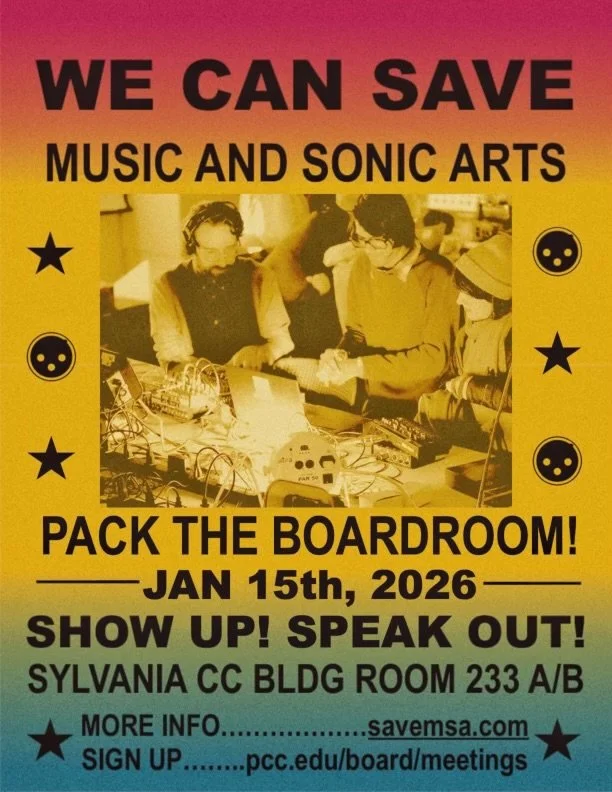 The Music and Sonic Arts program at PCC is the ONLY post-secondary, community music program in NE Portland. This program has existed under various names since 1980, but last spring top administrators at PCC suddenly decided to close it. This decision was based on incorrect data and false claims, which have now been debunked. MSA is slated for closure unless the PCC Board votes to reverse that decision. We need 4 out of the 7 board members to vote “yes” on a resolution to keep the program open! This is an equity issue. ALL Portlanders deserve equal access to our shared resources.